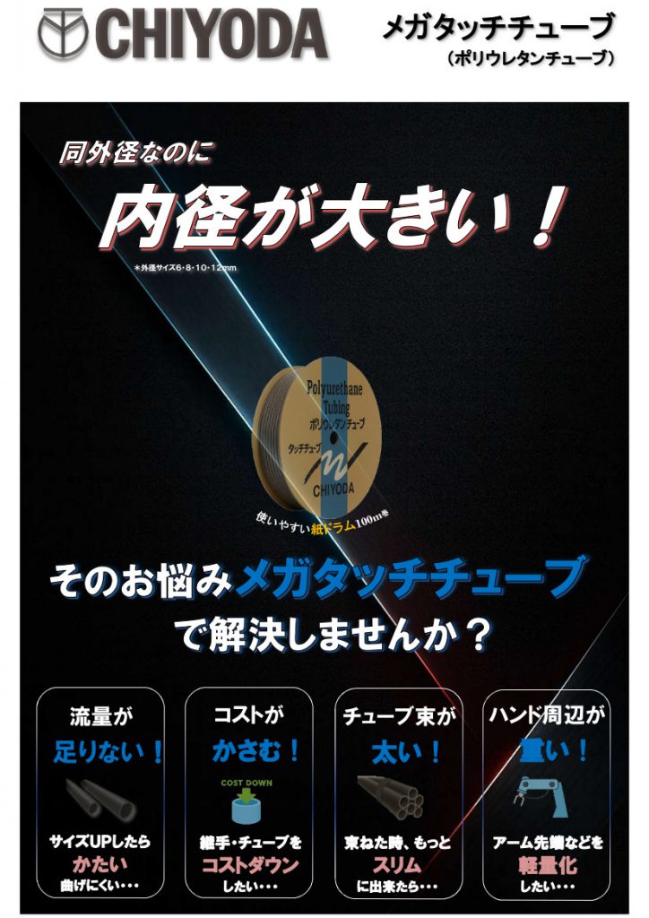 流路が広く、圧力が落ち難い コンプレッサー元圧を下げ電気代を削減